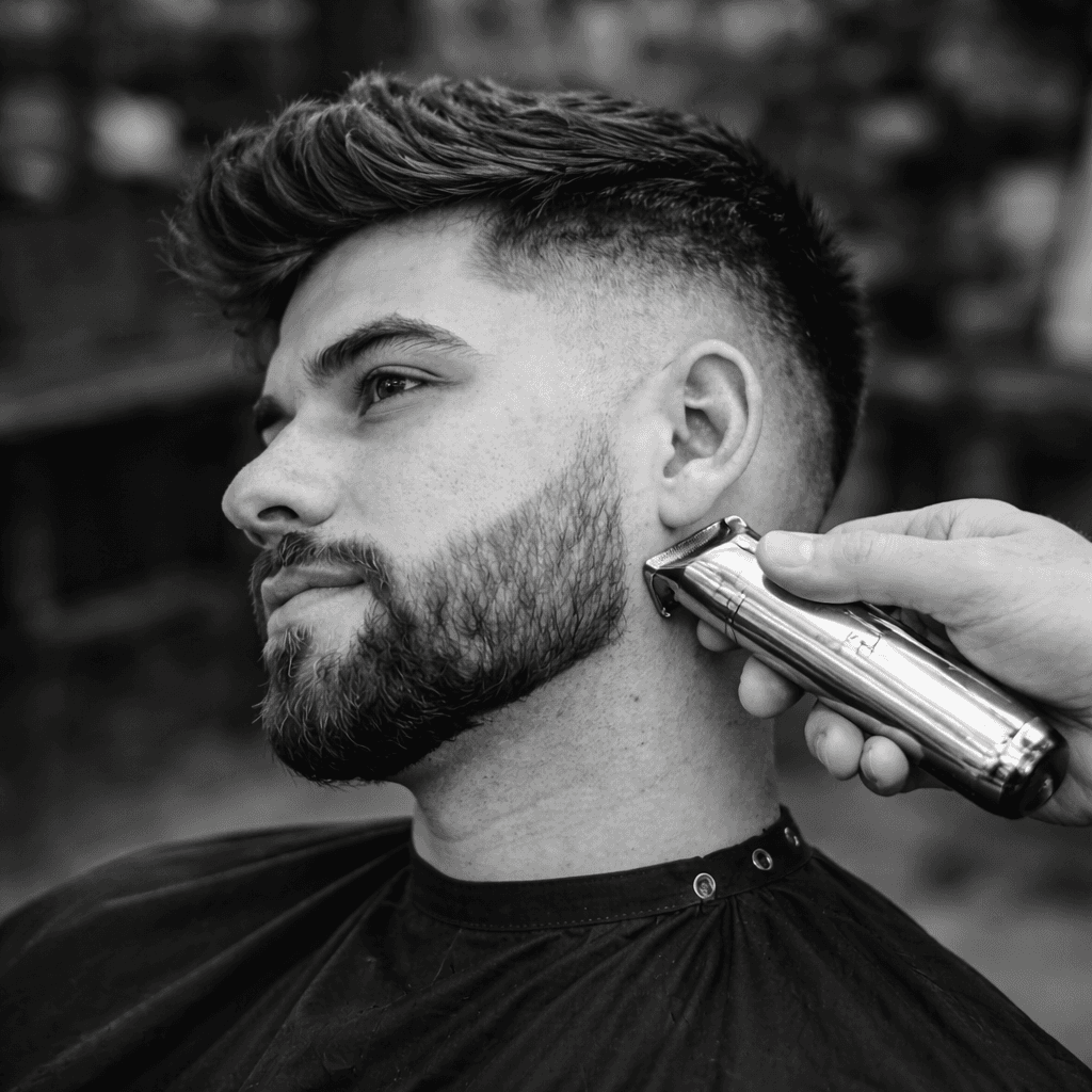 Barba com máquina sem acabamento final. Serviço rápido na Mayk Barbearia.