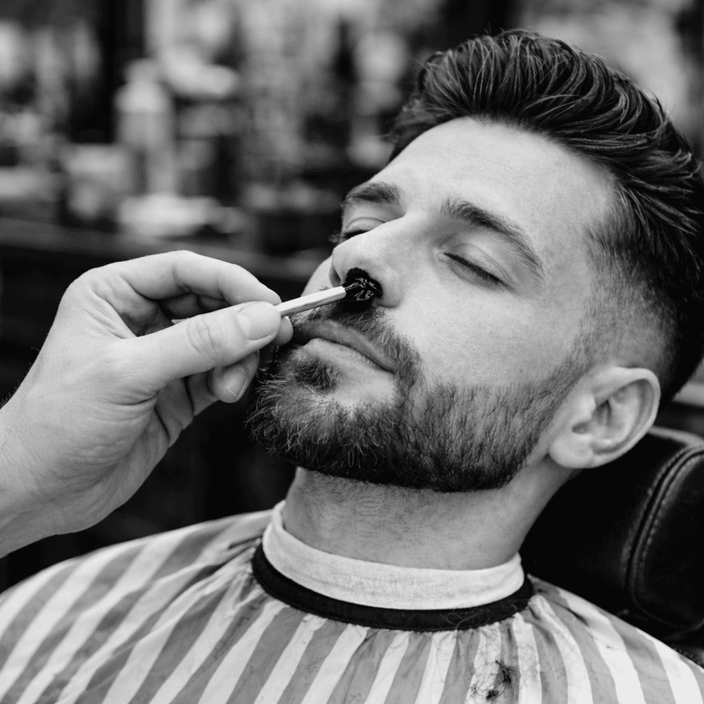 Depilação de nariz na Mayk Barbearia. Procedimento rápido para um visual limpo.