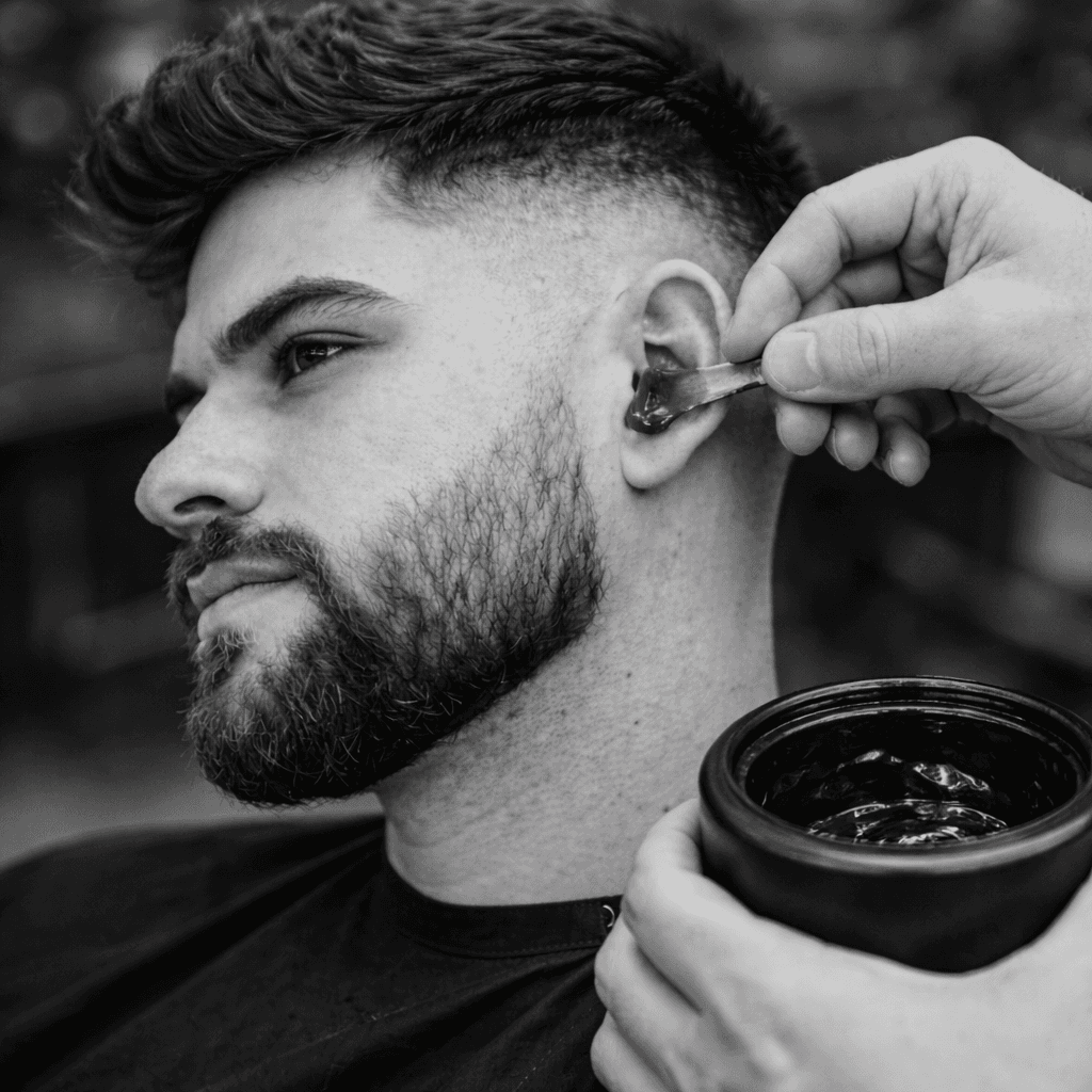 Depilação de orelha na Mayk Barbearia. Remoção de pelos de forma segura e higiênica.